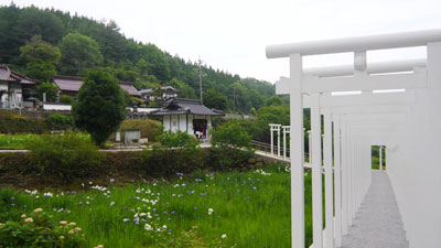 済渡寺 岡山県新見市法曾661 済渡寺の、あじさいはまだ5分咲きぐらいです、花しょうぶが綺麗に咲いています。 今年は3年ぶりの花まつりが開催されます。 令和4年6月26日(日) 真っ白な「千本鳥居」....平安時代、空海と共に唐から日本に渡り、「法曽焼」のもとになる陶器製造技術をもたらしたとされる白龍にちなんだ白色の鳥居があります(全長86m、78基)